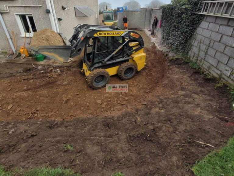 Our team installed this new patio in Youghal, Co. Cork. We removed the old garden and created a new extended layout. We corrected all the levels and installed a new drainage system and manhole covers. We poured a new concrete base for a garden shed and built connemara walling as a retaining wall against the garden. Finally, we laid the patio with silver granite slabs and a charcoal brick border.